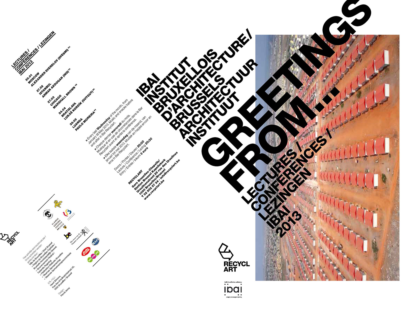 Poster of the series of lectures organized by Recyclart at IBAI (Brussels Architecture Institute) in 2013