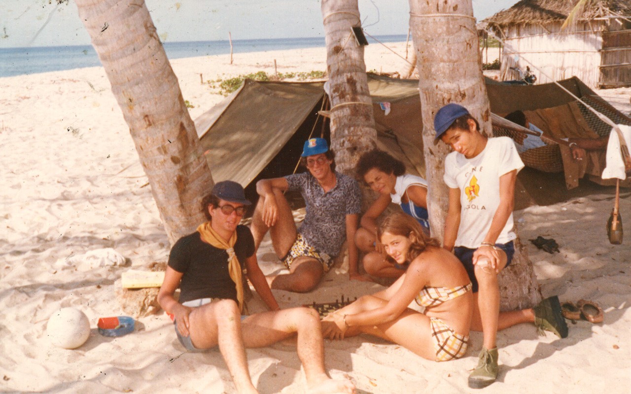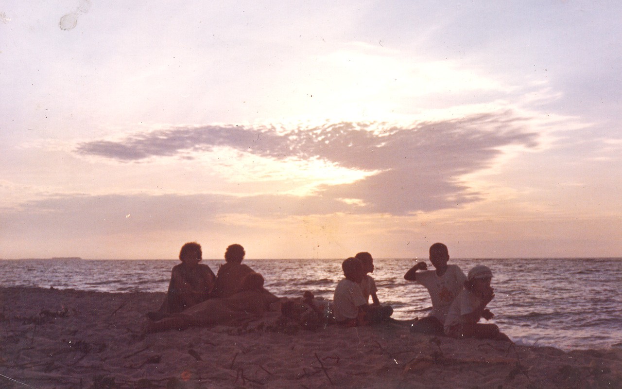 Chicala beach. Protected from the waves, and offering the opportunity to admire both sunrise (over the hill) and the sunset (by the ocean). Daniel Quintã Archive, 1971.