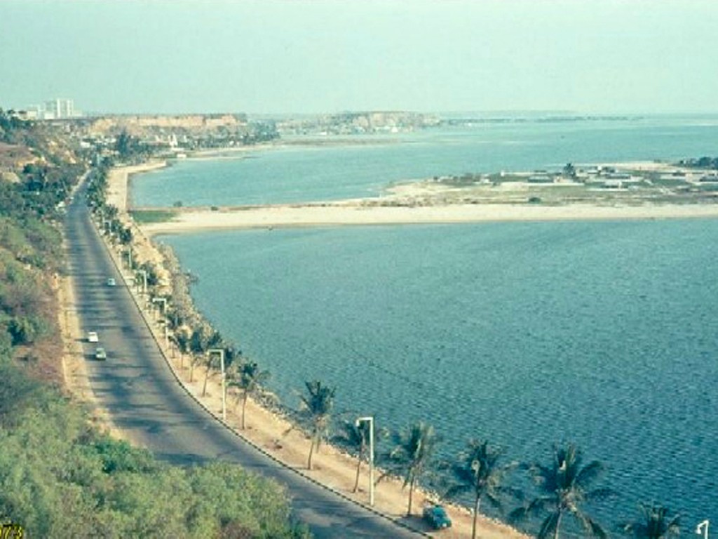Over the final years of Portuguese rule, the beaches at Chicala (on the island side) and Praia do Sol (on the continental side) became popular within the Portuguese population. Unknown source, 1967.
