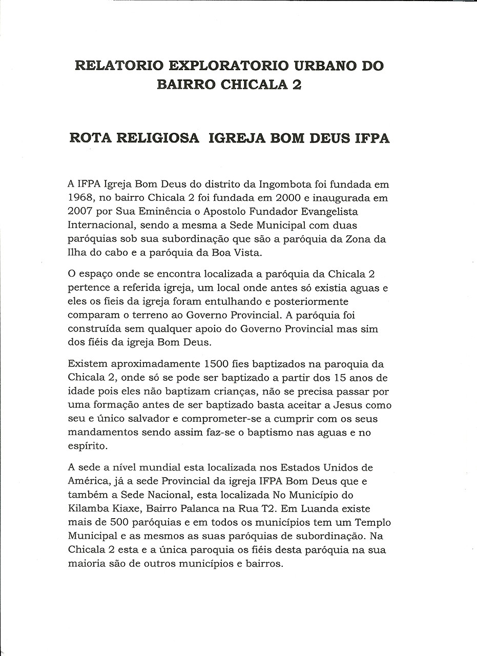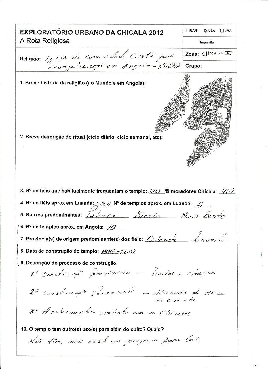 Rota religiosa, Exploratório Urbano da Chicala, Abril - Junho 2012